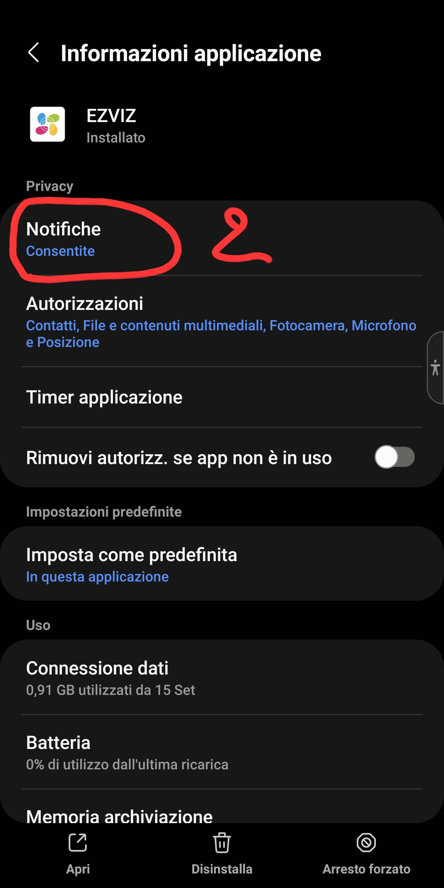 Andando quindi nelle Impostazioni del proprio smartphone nella sezione di configurazione specifica di quell’app specifica – i.e. Ezviz – (Impostazioni -> Applicazioni), quell’audio appena inserito si associa alla notifica come suono Predefinito per quell’app: