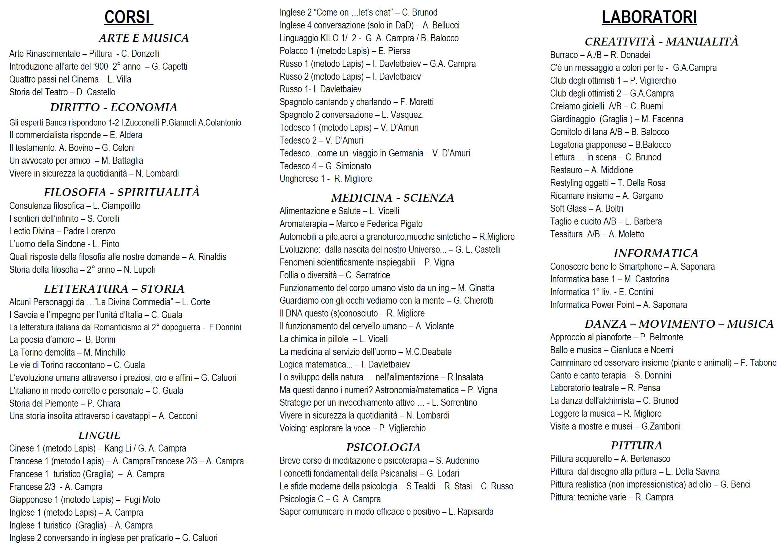 Quest’anno abbiamo conosciuto, casualmente a un concerto di musica classica, Giuseppe Campra, fondatore nel lontano 1975 della prima Università della Terza Età (UNI3 di Torino): dopo avergli parlato e avere avuto modo di apprezzarlo sia per la sua cultura sia per le sue molteplici iniziative, sia io sia mia moglie ci siamo resi disponibili a insegnare a un corso relativo al computer, lei alla medicina. Sebbene esistano oggi ben altre due università della terza età nella sola Torino, abbiamo apprezzato il clima familiare che si respira in questa UNI3 che è stata la prima a nascere ben 50 anni e continua a offrire una buona scelta tra corsi e laboratori oltre a molteplici iniziative culturali in Torino e a Graglia: