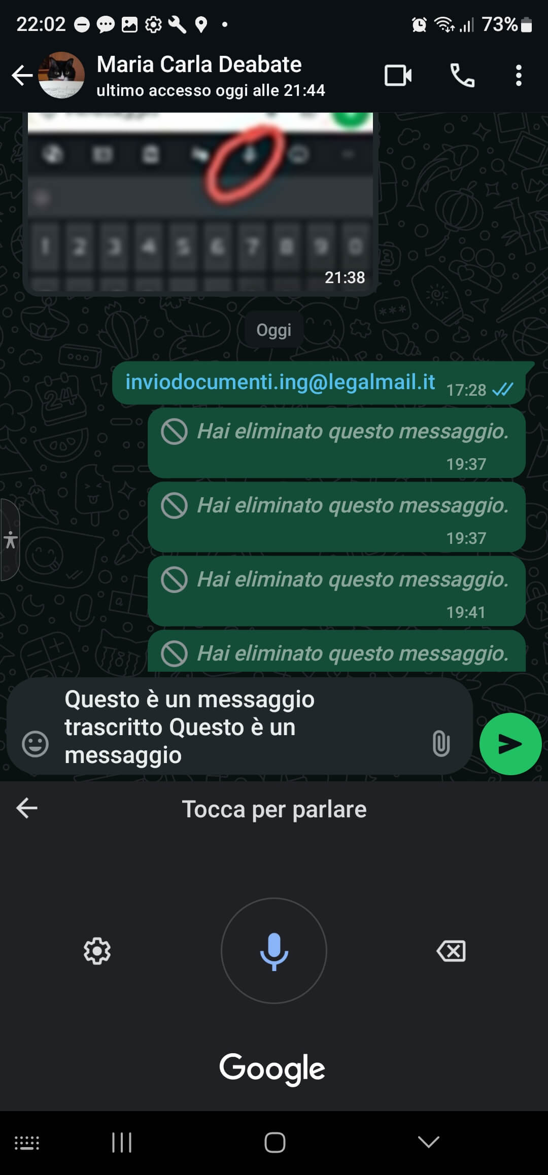 Vediamo quindi come fare a mandare un messaggio WhatsApp trasformando, in modo semplice e veloce, ciò che diciamo vocalmente in un testo che viene scritto nel campo da inviare: