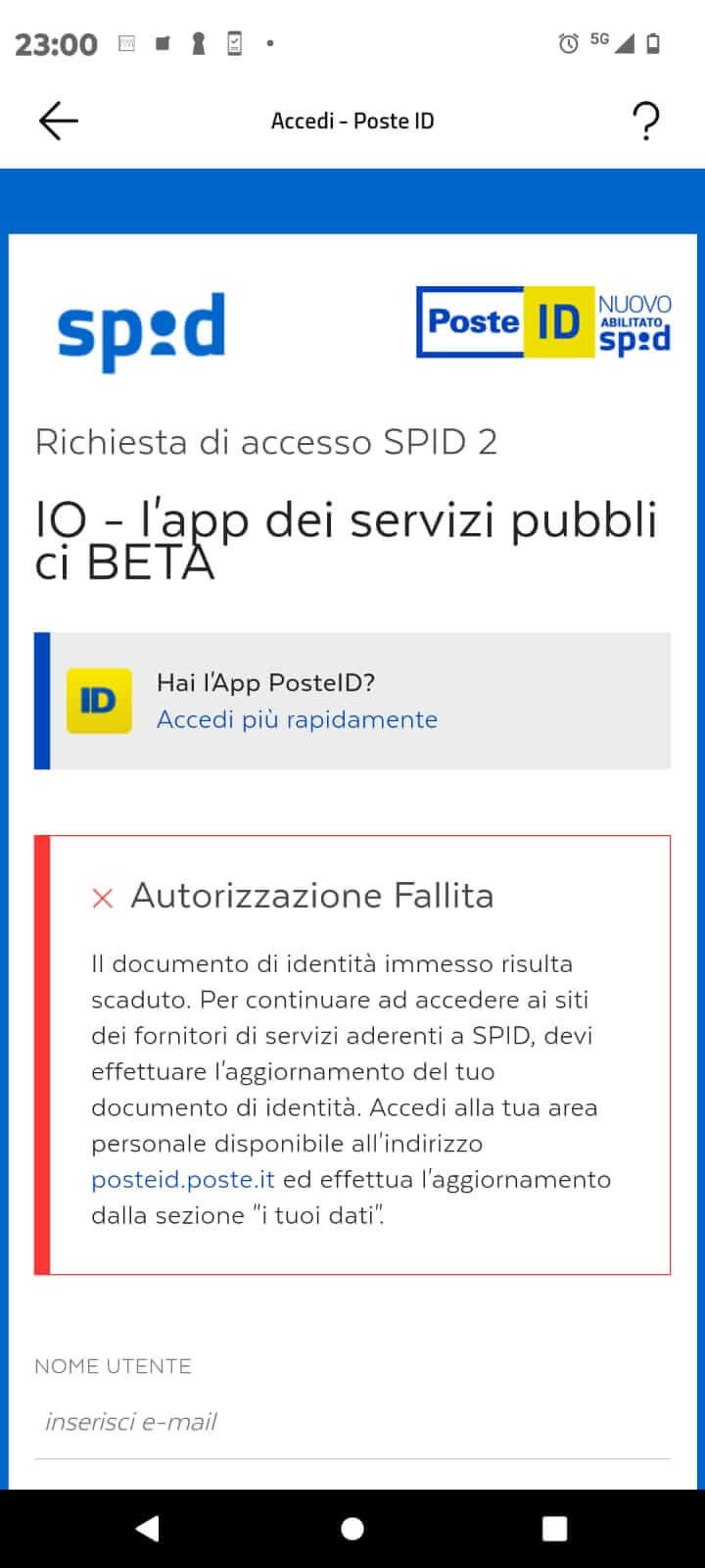 Magari, il documento di identità era stato cambiato mesi prima della sua effettiva scadenza (ad esempio per sostituire una logora carta d’identità cartacea con la più comoda CIE) e quindi questa notifica di Autorizzazione fallita può giungere inaspettata e creare problemi contingenti.