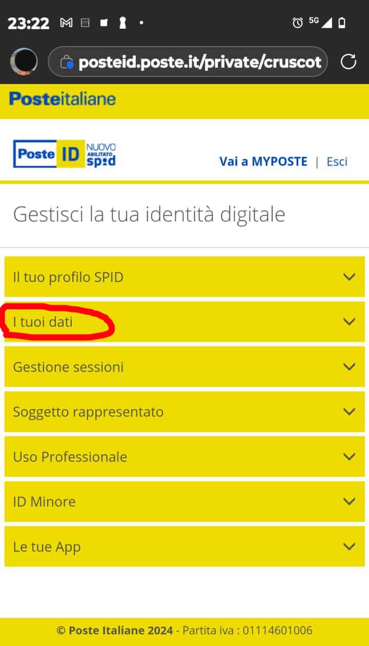 Si deve invece andare (come già evidenziato e indicato leggendo attentamente il messaggio di motivazione della Autorizzazione fallita) nel sito posteid.poste.it, autenticarsi per accedere alla propria area personale e poi a operare nella sezione “I tuoi dati“.