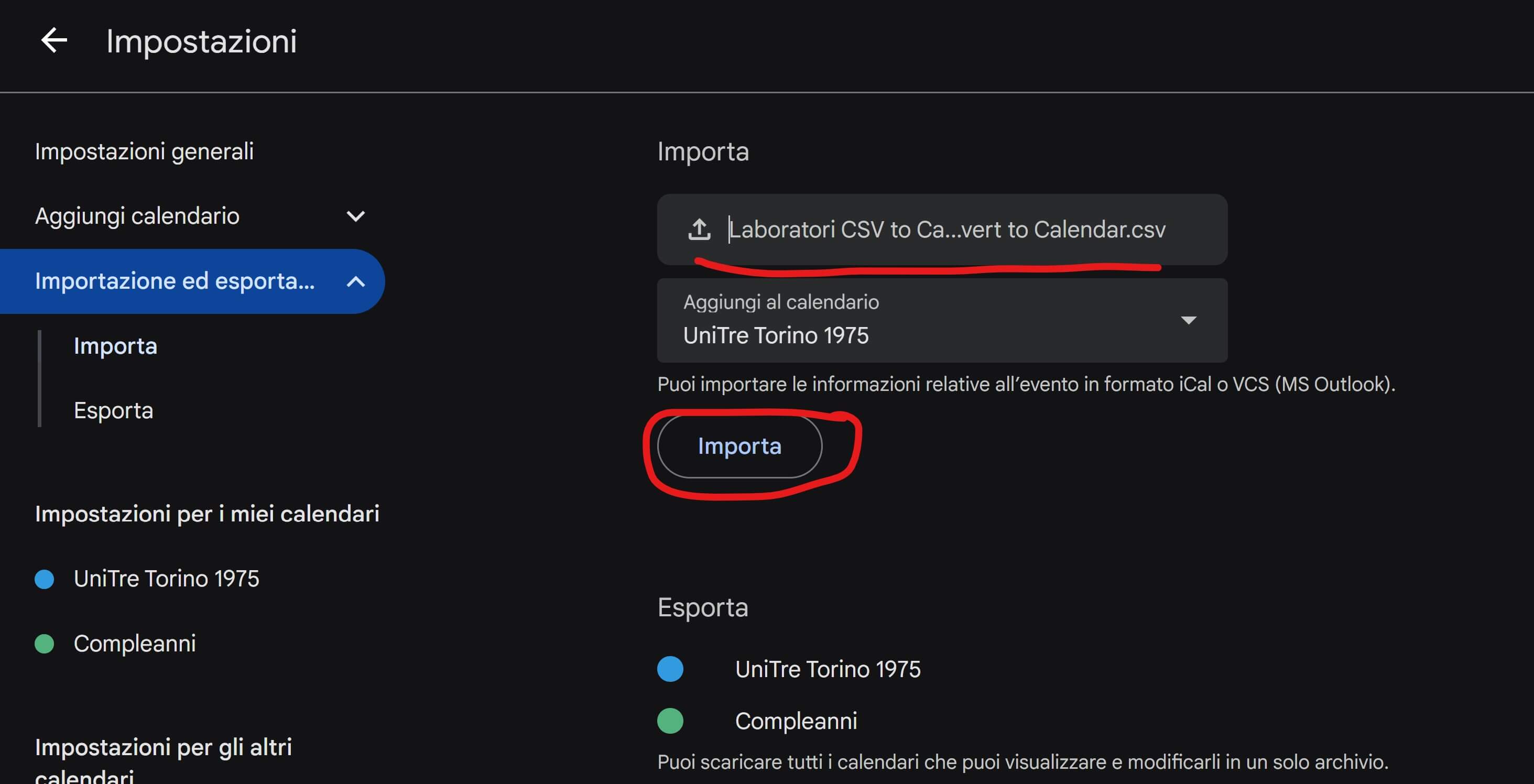 - In particolare, tra le impostazioni specifiche del calendario di interesse (e.g. UniTre Torino 1974),