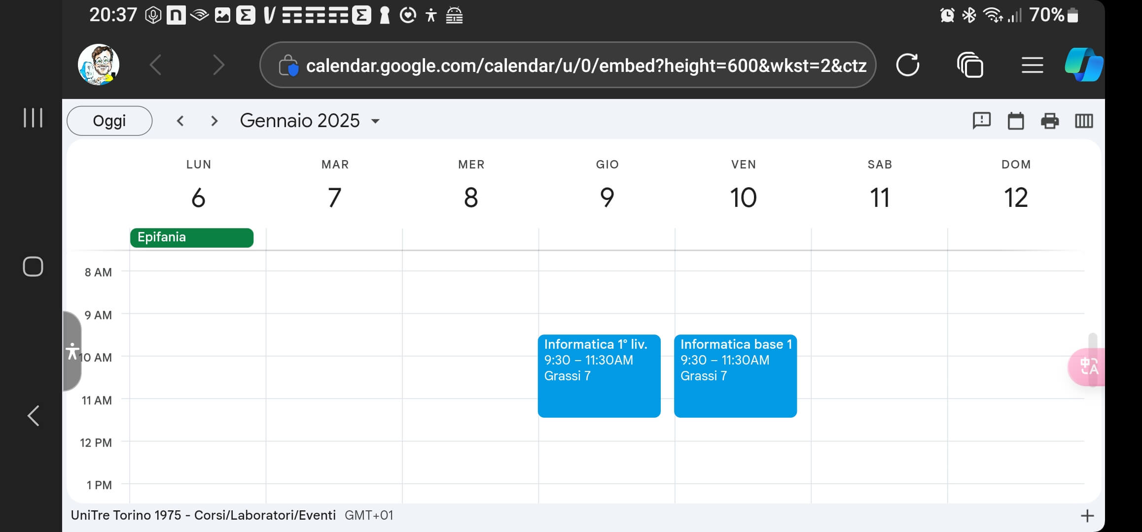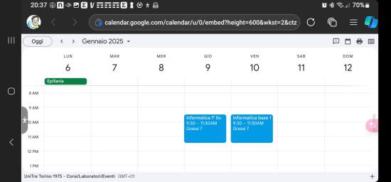 Nel seguito mostro gli screenshot di come appare quel calendario sia da PC sia da smartphone (avendo l’accortezza di ruotare in orizzontale il dispositivo nella visualizzazione settimanale, in modo da riuscire a vederla meglio).