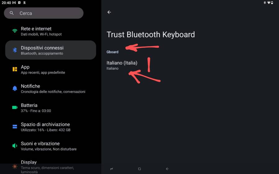 ← Come fare se, su un dispositivo Android, usando una tastiera Bluetooth esterna italiana, alcuni tasti non corrispondono alle rispettive lettere indicate (e.g. lettere accentate, caratteri speciali)
