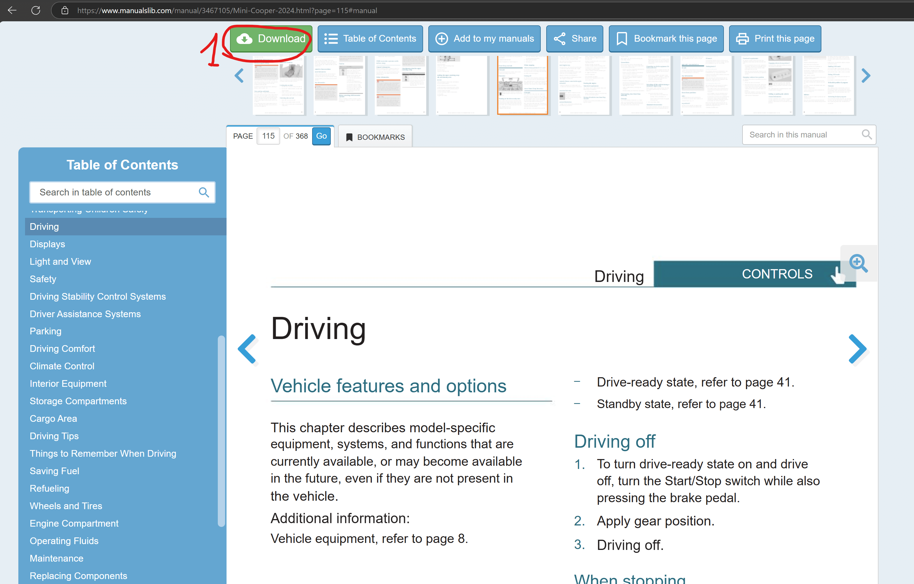 Ho trovato il manuale del modello più recente del 2024 su https://www.manualslib.com ricercando marca e modello opportunamente: https://www.manualslib.com/brand/mini/automobile.html. Purtroppo, anche qui il manuale esiste solo in inglese operando come segue: