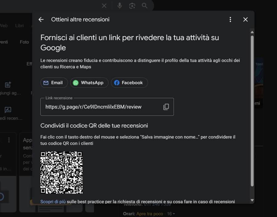 Come creare gratuitamente un QR code (e un link) per agevolare i propri clienti a inserire una loro valutazione/recensione sul nostro profilo Google