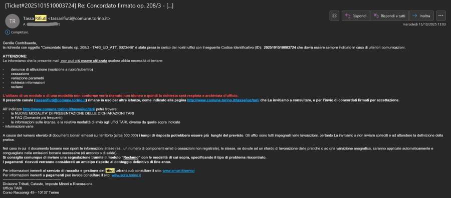 L’inadeguatezza della procedura adottata dal servizio della tassa rifiuti del Comune di Torino relativamente alla comunicazione dell’avviso di accertamento concordato