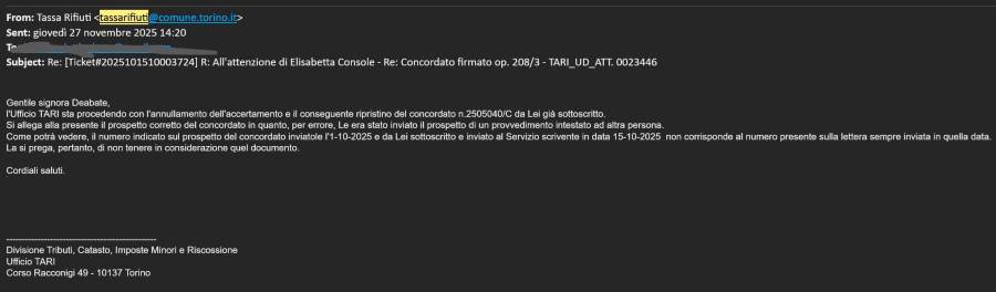 L’inadeguatezza della procedura adottata dal servizio della tassa rifiuti del Comune di Torino relativamente alla comunicazione dell’avviso di accertamento concordato