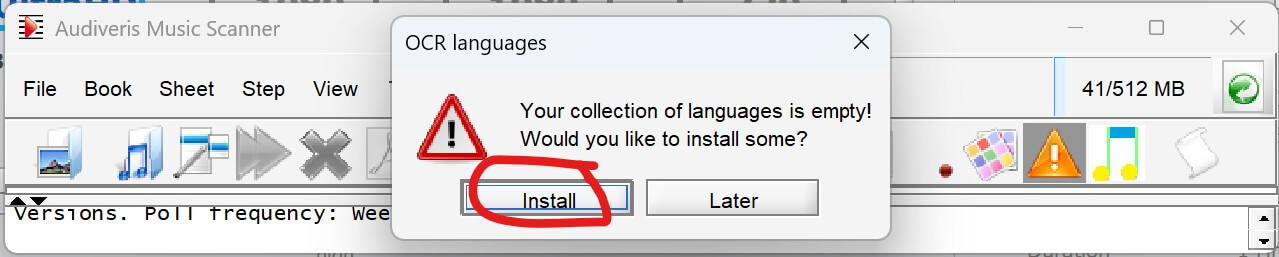 Si noti che in Audiveris, i pacchetti lingua servono solo a Tesseract OCR per riconoscere testi scritti (titoli, indicazioni, dinamiche, ecc.) in quella lingua: quindi l’interfaccia grafica del programma non cambia e rimane in inglese. Quindi: