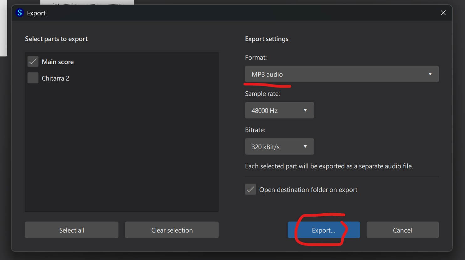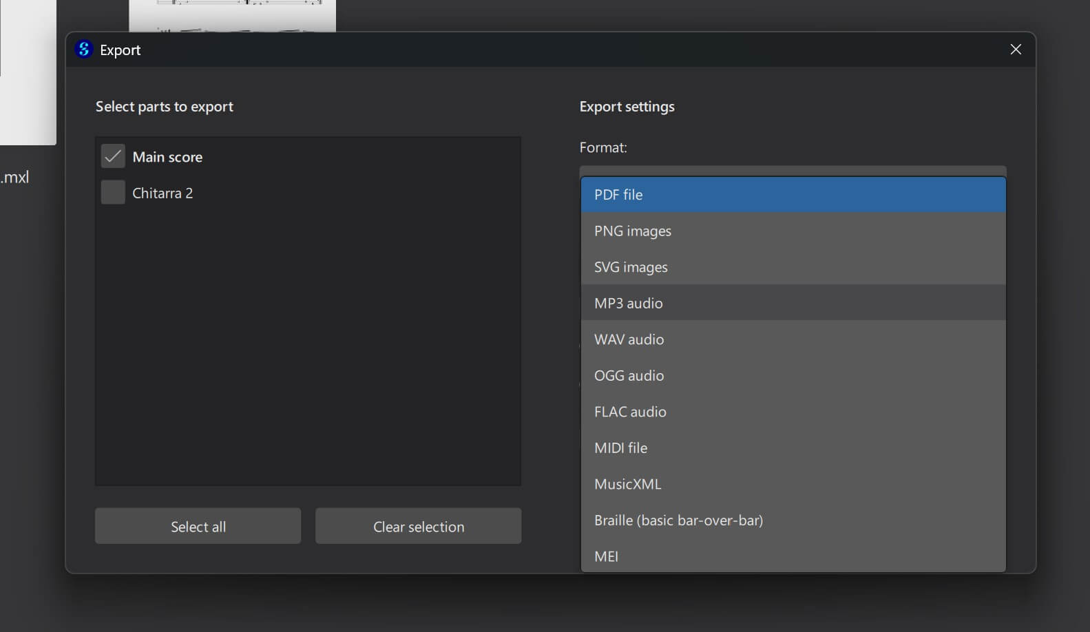 Nel caso in cui la partitura abbia più parti, tutto comunque funziona analogamente sia su Audiveris sia sue su MuseScore dove poi si possono escludere/includere le parti desiderate prima di effettuare l’esecuzione e il salvataggio in mp3: