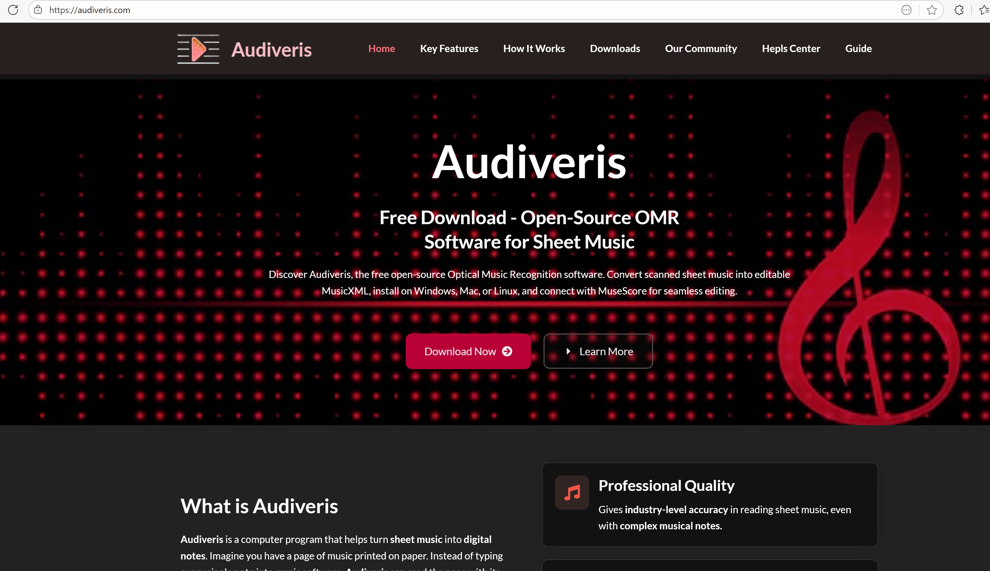 Il sito in cui si può trovare Audiveris è https://audiveris.com. In particolare, per installare l’ultima versione si deve andare in https://github.com/Audiveris/audiveris/releases cioè nel repository di quel progetto open-source che risiede, come spesso avviene, in github.com.