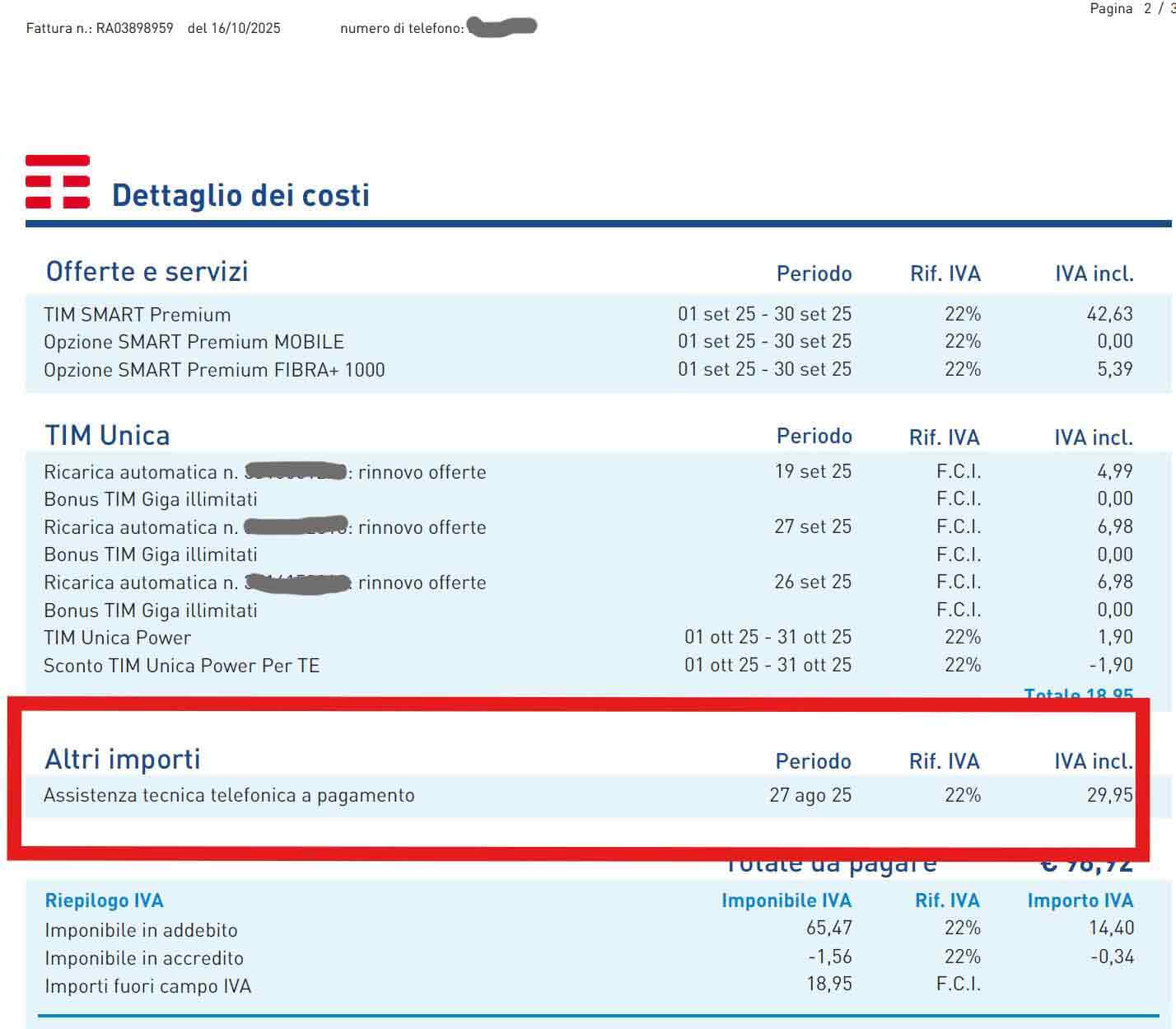 Assistenza tecnica telefonica a pagamento di TIM: diversamente da quanto indicato, viene fatta pagare anche quando non viene risolta una problematica che comunque dipende dai loro sistemi e non dal cliente