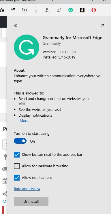 Spesse volte, per rendere più universalmente usufruibile un post, un blogger scrive in inglese … sebbene non sia la sua lingua madre per cui possibili errori grammaticali sono sempre in agguato! Perciò l’estensione Grammarly for Microsoft Edge, disponibile per quel browser preinstallato in ogni PC/tablet Windows 10, può egregiamente servire per ricevere utili suggerimenti su come migliorare ciò che scrivi in inglese un qualsiasi editor acceduto tramite quel browser e quindi anche quando si scrive un post in WordPress.