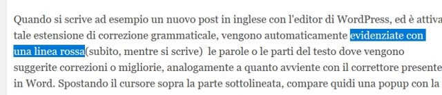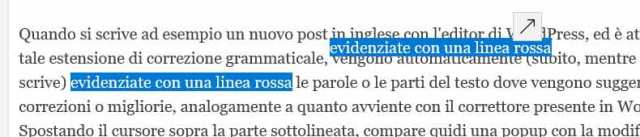 Si noti infine che il browser Edge presenta il seguente fastidioso comportamento quando viene utilizzato l’editor di WordPress: se si fa un cut&past di una parte di testo per spostarlo, al contenuto reinserito viene applicato talvolta un tag HTML di <span> (e.g. <span style=”display: inline !important; float: none; background-color: #ffffff; color: #444444; cursor: text; font-family: Georgia,’Bitstream Charter’,serif; font-size: 12px; font-style: normal; font-variant: normal; font-weight: 400; letter-spacing: normal; orphans: 2; text-align: left; text-decoration: none; text-indent: 0px; text-transform: none; -webkit-text-stroke-width: 0px; white-space: normal; word-spacing: 0px;”> evidenziate con una linea rossa </span>) che altera lo stile del testo: per riportarlo alle condizioni iniziali si richiede quindi un editing nel codice HTML.