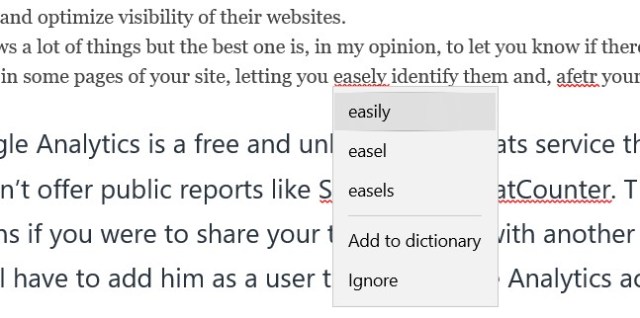 Quando è attivoGrammarly for Microsoft Edgee si scrive, ad esempio, un nuovo post in inglese con l’editor di WordPress, vengono anche in questo caso automaticamente evidenziate (mentre si scrive), con una linea rossa, alcune parti del testo che necessitano migliorie. Spostando il cursore sopra la parte sottolineata, compare poi una popup con la modifica suggerita e, cliccandoci sopra, anche in questo caso quella viene direttamente applicata al testo. Si noti però che non vengono evidenziati i solo errori di battitura, bensì anche quelli grammaticali e magari sono proposte anche possibili migliorie. Infine, risulta presente un tasto See more in Grammarly per ricevere ulteriori delucidazioni sul suggerimento proposto: seguendo tale link si imparano, tra l’altro, molti aspetti della lingua Inglese che magari non si conoscono!