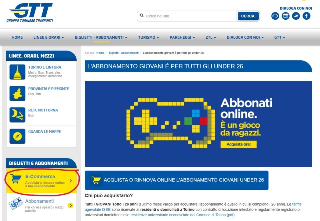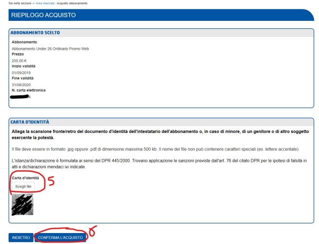 Quest’anno consiglio quindi di procedere anche voi con la forma di rinnovo/attivazione online che, come anche mostrato nel seguito, risulta ora agevole ed intuitiva: inoltre, si risparmiano 3€ rispetto ad un acquisto presso una biglietteria (oltre alla lunga coda di attesa!). Purtroppo l’acquisto online ha ancora un ultimo neo: la velocità dei server e/o delle procedure utilizzate ad accedere ai dati necessari per effettuare l’acquisto, non sono ancora (a mio parere) calibrati correttamente, in quanto l’utente (con un PC collegato ad una linea fissa in fibra) deve rimanere per quasi un minuto in attesa della prima pagina di compilazione dell’acquisto, evidente segnale di sovraccarico del sistema. È vero che oggi che è un potenziale momento di traffico intenso, essendo 4 giorni prima della scadenza dell’abbonamento annuale per molti under 26, ma un sistema ben gestito dovrebbe comunque prevedere di calibrarsi opportunamente, in modo possibilmente dinamico, per sostenere i ben prevedibili periodi di sovraccarico (e.g. modificando i requisiti prestazionali richiesti, qualora il sistema fosse distribuito in un qualsiasi Cloud agevolmente riconfigurabile temporalmente a piacere).
