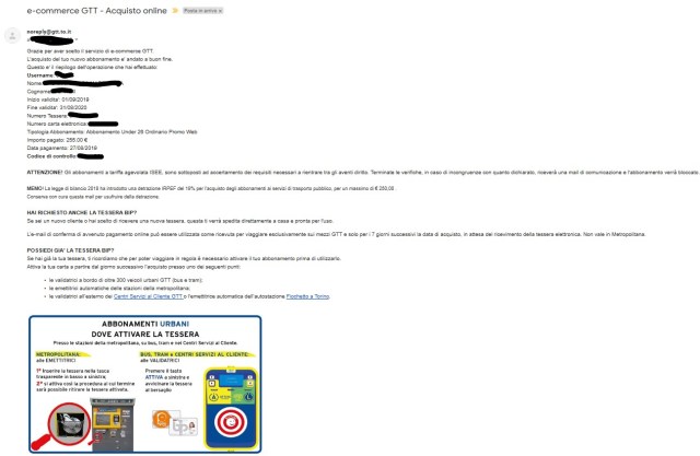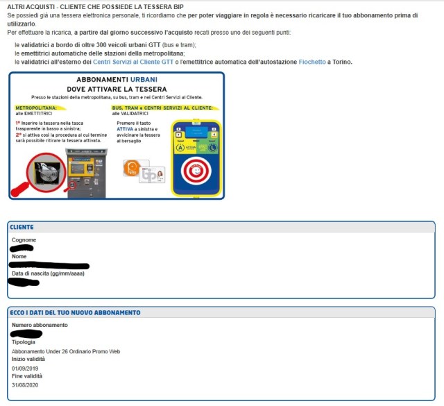 Parte, a questo punto, una solita procedura di pagamento online con inserimento dei dati di carta di credito. Infine mostrata la ricevuta con le istruzioni su come attivare sulla carta l’abbonamento appena rinnovato.