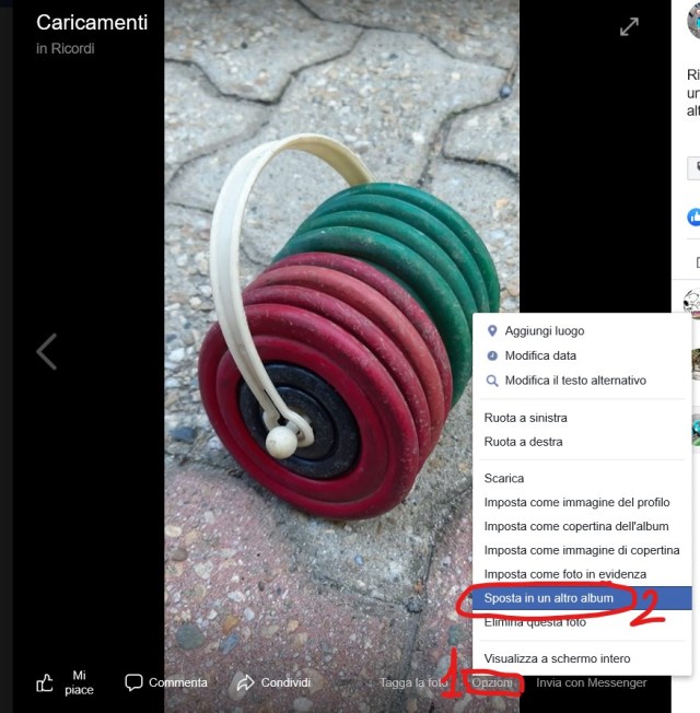Sometime it may happen that you forgot to choose the appropriate album and so you’d like to move some of those photos in an appropriate album: no way to do that from the app available on your device! However, if you use the browser (possibly on a PC, but even on your smartphone) an appropriate “Move to another album” (IT: “Sposta in un altro album“) is usually available either from the thumbnail upper right pen icon or in the bottom right Options available when the photo is shown in detail.