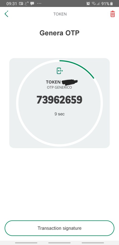 Ecco il terzo punto di attenzione: 3) L’attivazione della metodologia Token risulta esclusiva vale a dire, una volta scelta, non consente più di utilizzare quelle preesistenti (e.g. la chiavetta; la carta di codici operativi). Talvolta (e.g. ING Direct) si può tornare al precedente metodo, ma la procedura non è immediata; altre volte (e.g. INTESA SANPAOLO) si può optare – come in alternativa alla sua attivazione – ad un invio dell’OTP via SMS, ma in quel caso viene richiesto un canone annuale (non del tutto irrisorio e comunque ingiustificato se si pensa che non solo già si paga per ottenere il servizio di banca online, ma viene pure viene applicato un costo per ciascuna transazione richiesta). In realtà ho sperimentato che invece per la BNL la generazione del token può continuare ad essere effettuato anche tramite la preesistente chiavetta e la modalità tramite app su smartphone risulta solo una possibile alternativa (mentre per INTESA SANPAOLO l’ultimo uso della chiavetta è per confermare l’attivazione del Mobile Token, dopo di che perde qualsiasi utilità e la si può buttare!).