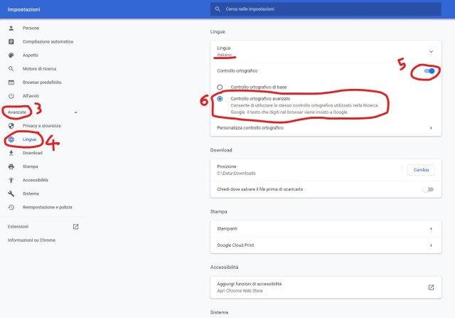 Gli errori ortografici sarebbero già comunque evidenziabili (1) – Installare il supporto per le lingue di interesse da Settings -> Language (IT: Impostazioni -> Linguaggio)