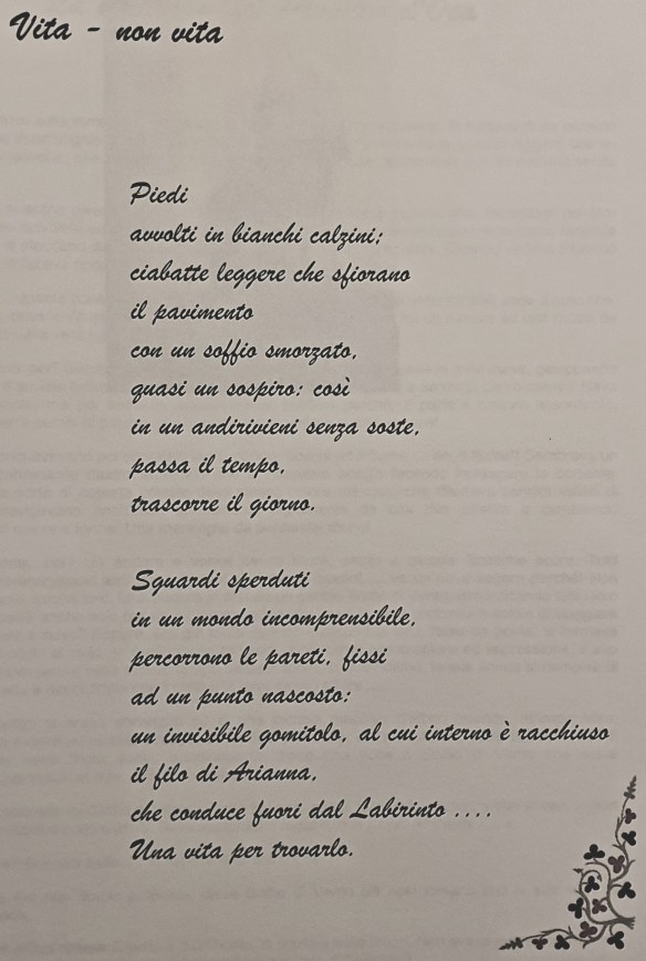 E la gente, poi? Un andare e venire senza sosta, simile a piccole formiche scure. Tutti correvano o camminavano lesti, sia i giovani sia i meno giovani, … va un po’ a sapere perché! Non avrebbero potuto, anche loro, farsi portare in aria da un gentile Soffio di Vento, dimenticando tutti i loro grattacapi e fastidi anche solo per un momento, godendosi così la gioia profonda e sottile di viaggiare sospesi tra cielo e terra? Eppure, era già tanto quando qualcuno di loro, forse un poeta, si fermava sollevando gli occhi al cielo. In quel momento i suoi occhi cambiavano colore ed espressione, il suo sguardo si faceva teso e nello stesso tempo disteso: forse, in quell’attimo, la sua anima si riempiva di tutte le cose belle e dimenticate che il cielo e la terra sanno offrire ……