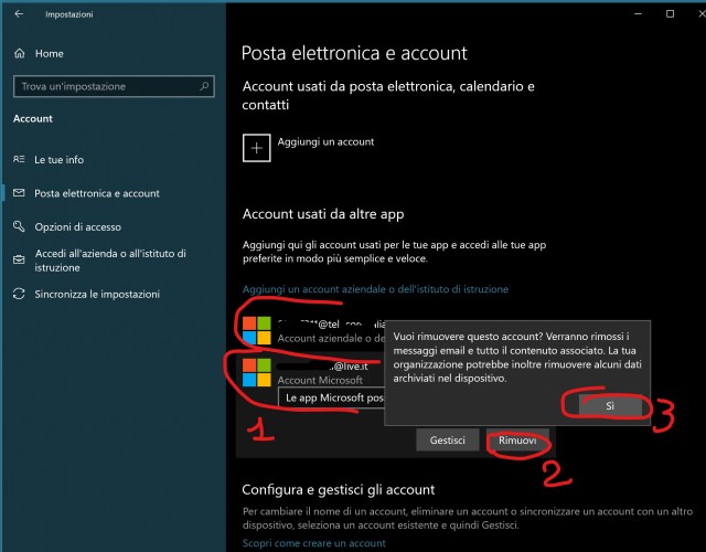 In addition, all your registered accounts must be deleted, for example, to read emails from different providers or to access to your company intranet: