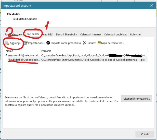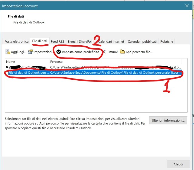 Then you may need to delete your email account from each email client, even though you have already cleared your credentials from the PC. Going in your user directory from the File Explorer, you will find the .pst outlook file containing your downloaded emails: you have to delete them possibly after having saved on an external device. Have then a deeper look in your user directory where some other application could have stored other data related to you.In the following I show some steps for Outlook email client: note that you need to create a new data file and set it as the default one, before deleting your account data: