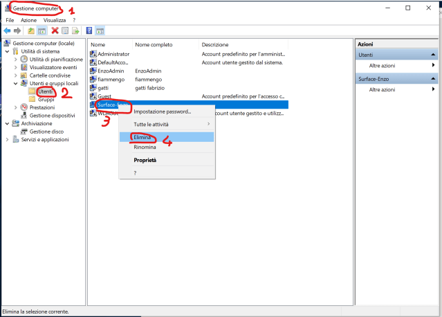 Finally, you can delete your PC user account after having created new users for your colleague that have administration rights.