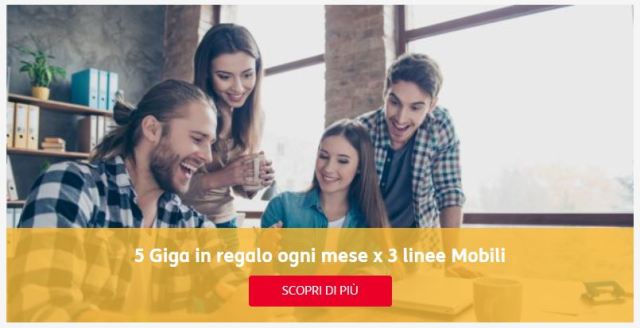 Esempio di offerta attuale: 5 Giga in regalo ogni mese x 3 linee mobili con il solo vincolo di avere attivata la ricarica automatica