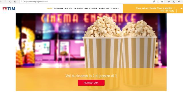 Sito TIMparty.it: identificazione del cliente automatica se il PC/smartphone è collegato al Wi-Fi di casa