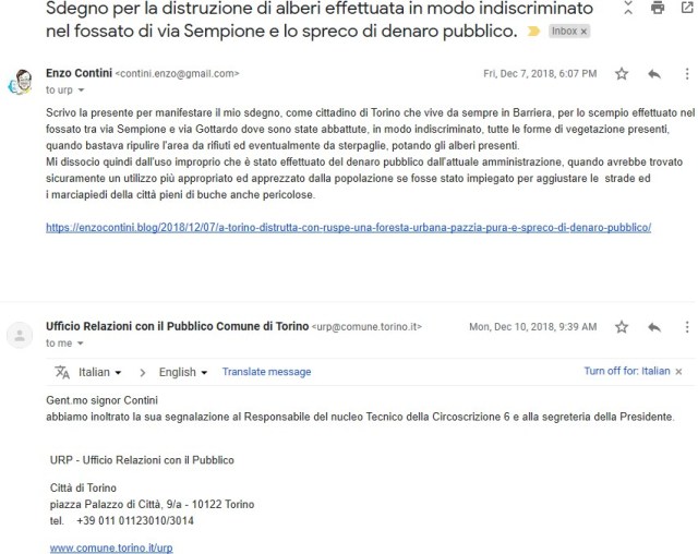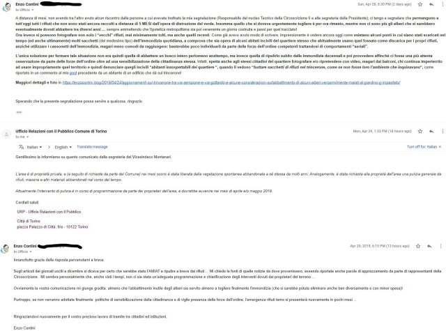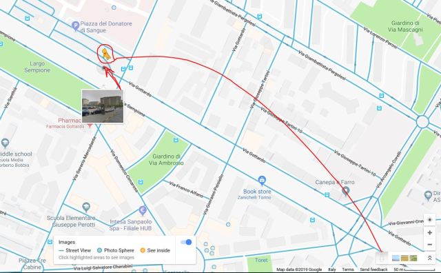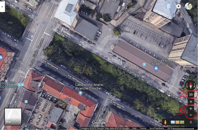 Proprio recentemente ho utilizzato tale mezzo per ripercorrere com’era il fossato tra via Sempione e via Gottardo (generalmente soprannominato il “Trincerone“, dove un tempo transitavano treni merci) prima dell'”intervento” avvenuto a inizio dicembre 2018 che ha distrutto tutta la flora creatasi naturalmente nel tempo, abbattendo a colpi di ruspa e di motosega centinaia di alberi decennali in modo indiscriminato. Per documentare in modo oggettivo tale opera distruttiva, che è stata incapace di distinguere il degrado dell’immondizia (attualmente ancora presente) da un patrimonio arboreo e naturale, poteva quindi essere tornare utile mostrare come era quel territorio in precedenza. Oltre ad alcune mie foto, chi meglio di Street View poteva farlo? Infatti, Google ha effettuato periodicamente, negli ultimi anni, diverse registrazioni fotografiche anche di quella zona di Torino e ciò consente agevolmente, ancora oggi, di ripercorrere il bosco che era presente in quel fossato, e questo non solo in tutta la sua lunghezza, ma anche negli anni e (casualmente) magari anche in diverse stagioni.