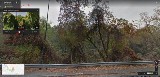 Nella seguente foto viene mostrato, ad esempio, l’immagine del posto nell’ottobre 2017 mentre nella finestrina di preview quella del maggio 2014. Se si volesse poi vedere quest’ultima in grande nella finestra principale, basterebbe cliccare dentro la sua piccola immagine in preview: