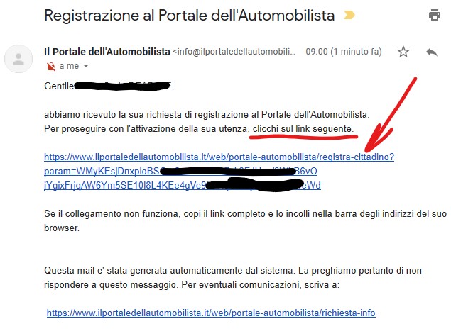 Premere il tasto di verrifica presente nella email ricevuta