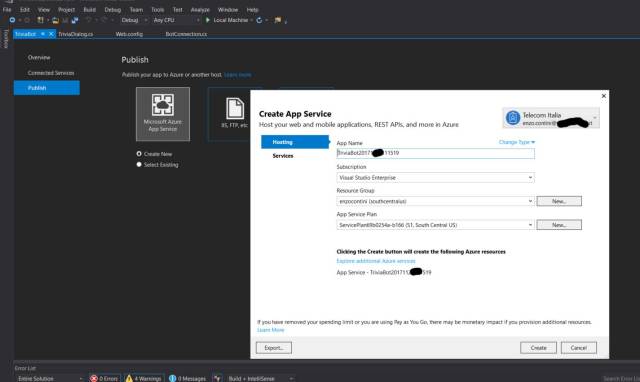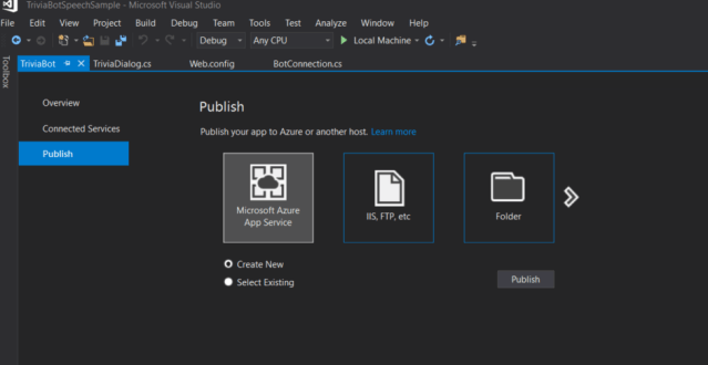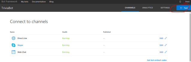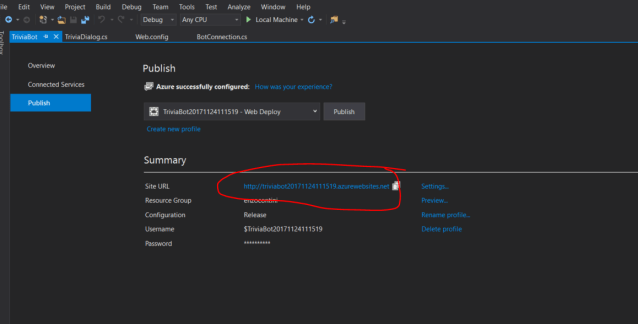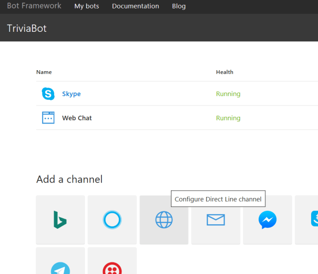 Enable the Direct Line channel in the bot settings page, Add a new site and paste a Direct Line secret in TriviaApp\BotConnection.cs file.