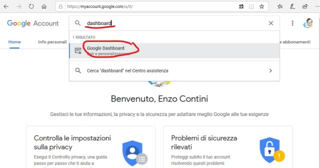 Then the easiest way is to look for the Google Dashboard page of Google from the Search input available in the Google Account page or directly go to https://myaccount.google.com/dashboard.