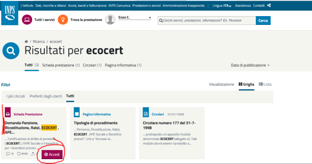 Accesso alla sezione di inoltro della dichiarazione sostitutiva (invio online) (1)