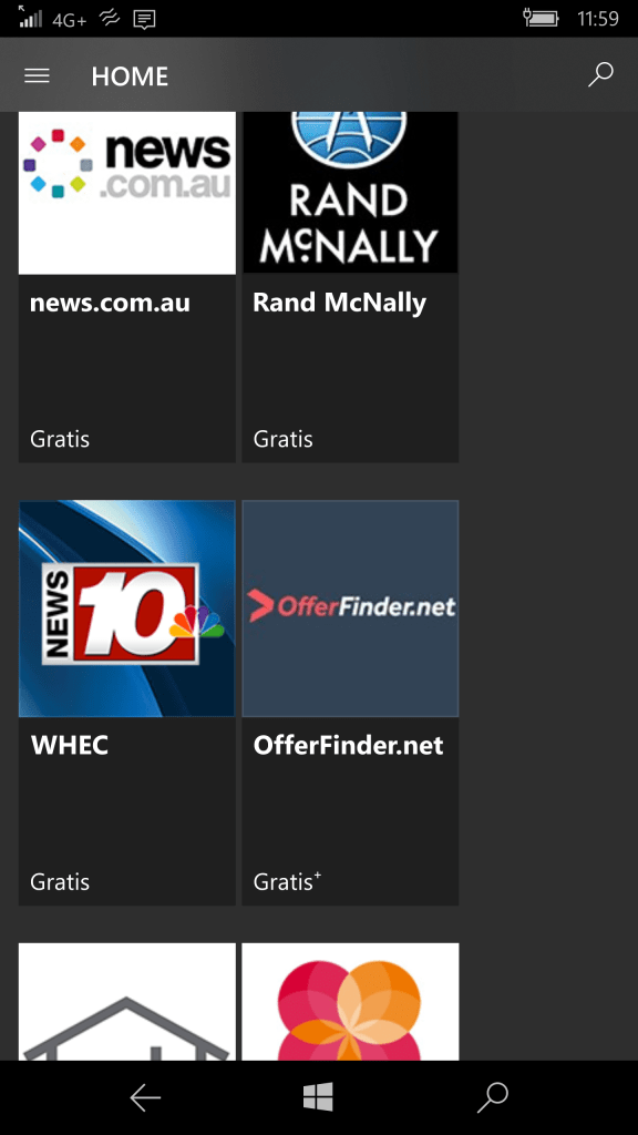 Ricerca nella pagina di Start della tile relativa all’app TIMVISION (si noti che la tile di NETFLIX è disabilitata con Continuum perché, diversamente dalle app di TIM, non è stata sviluppata come UWP