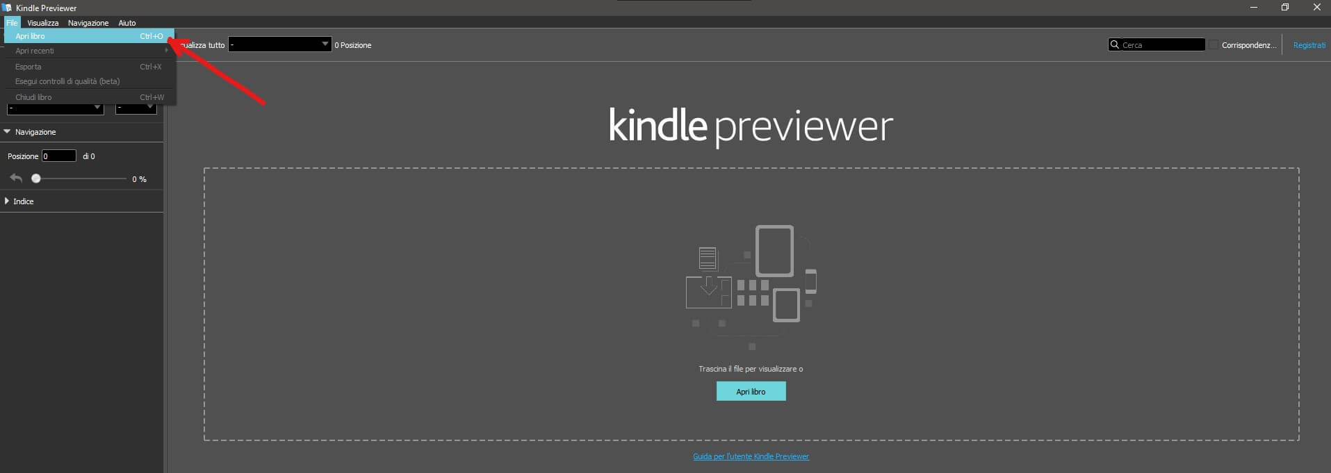 L’anteprima può essere fatta sia online sia scaricando un apposito lettore (KindlePreviewer) dal link relativo al programma KindelPreviewerInstaller.exe che poi deve essere eseguito (i.e. con il doppio click) per averlo installato sul proprio PC: