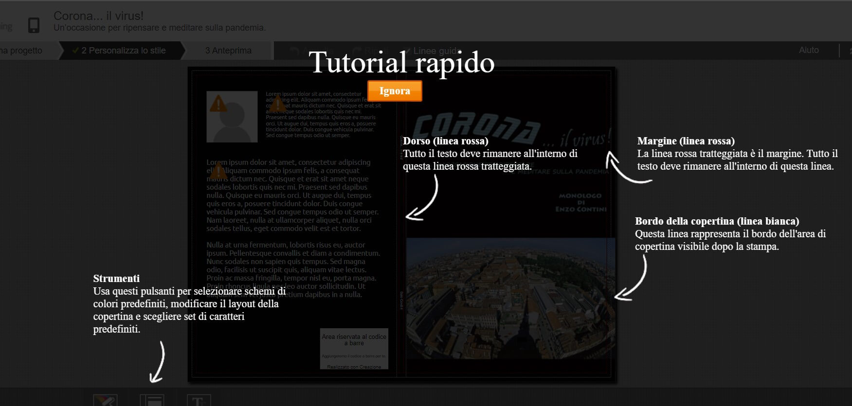 All’atto della realizzazione dell’anteprima di stampa per la versione cartacea, vengono fin da subito eventualmente fornite indicazioni su opportune modifiche da effettuare perché sia il testo sia la copertina risultino i più opportuni. Una volta apportate le modifiche suggerite si giunge quindi al risultato seguente: